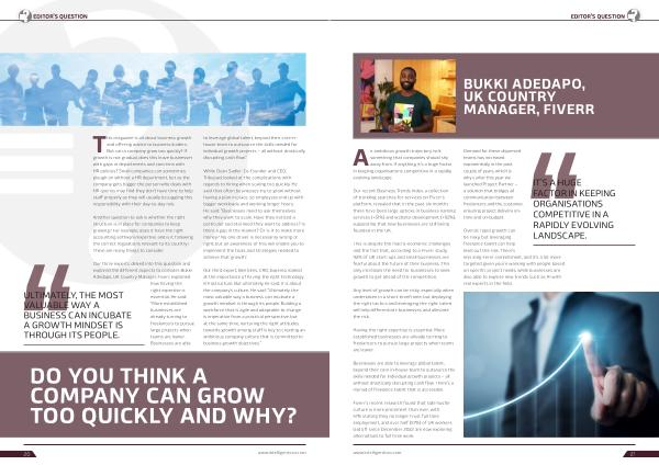 Adedapo , UK Country Manager , Fiverr , explained how having the right expertise is essential . He said : “ More established businesses are already turning to freelancers to pursue large projects when teams are leaner . Businesses are able to leverage global talent , beyond their core inhouse team to outsource the skills needed for individual growth projects – all without drastically disrupting cash flow .”
