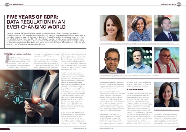 In May of this year , the General Data Protection Regulation ( GDPR ) celebrated its fifth birthday . Its introduction back in 2018 caused a huge shift in business practices around data and forced organisations to make data protection a part of their day-to-day . Half a decade later and the challenge continues to evolve . The UK ’ s British Data Protection Bill – still in its infancy – promises to bring a new set of regulations that businesses will have to navigate . At the same time , new technologies , such as generative AI , are presenting an additional complication . With that in mind , seven business leaders share their reflections on the last five years of GDPR , as well as what the future might hold .