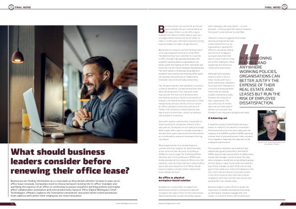 Many organisations have already begun to commit , with their support for hybrid working at the centre of their decision . According to VMWare ’ s recent study , The Distributed Work Dilemma , one in ten businesses in EMEA have totally abandoned their physical offices since the pandemic , and more than half have reduced office space . But what about the rest ? What should business leaders consider before making their lease renewal decision ?