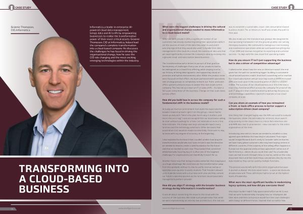 Informatica, a leader in enterprise AIpowered cloud data management, brings data and AI to life by empowering businesses to realise the transformative power of their most critical assets. Graeme Thompson, CIO at Informatica, helped lead the company’ s complete transformation into a cloud-based company. He discusses the challenges he has faced in driving the organisational change, how he sees the CIO role changing and the most exciting emerging technologies within the industry.