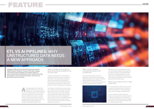 Unstructured data is a different beast. It’ s massive in scale, scattered across silos and hard to classify. AI workflows are iterative and nonlinear, with branching paths rather than straight lines. Moving unstructured data through a rigid ETL framework doesn’ t work. www. intelligentcxo. com