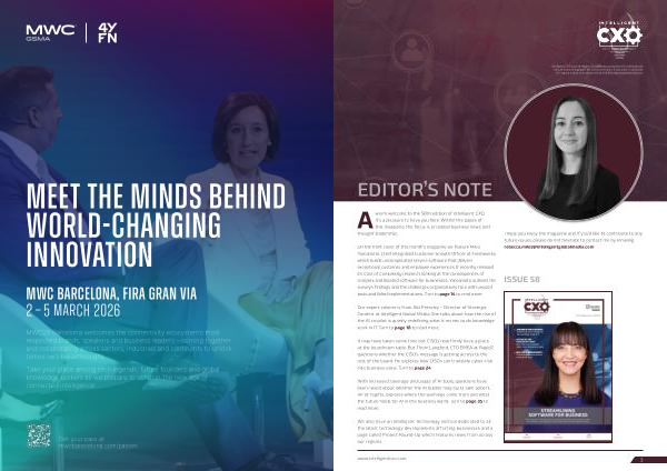 Awarm welcome to the 58th edition of Intelligent CXO. It’ s a pleasure to have you here. Within the pages of this magazine, the focus is on global business news and thought leadership.