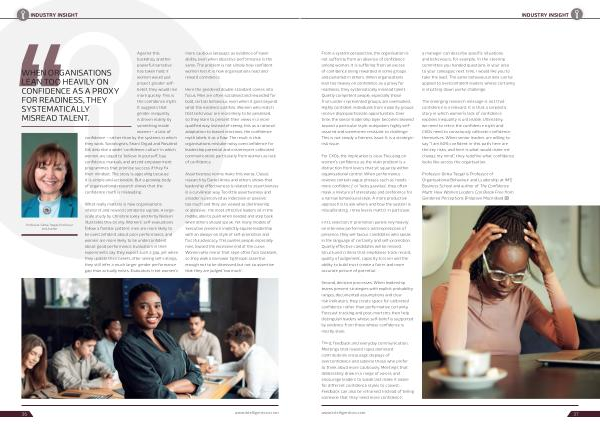 For CXOs, the implication is clear. Focusing on women’ s confidence as the main problem is a distraction from levers that sit squarely within organisational control. When performance reviews contain vague phrases such as‘ needs more confidence’ or‘ lacks gravitas’, they often mask a mixture of stereotype and preference for a narrow behavioural style. A more productive approach is to ask where and how the system is miscalibrating. Three levers matter in particular. a manager can describe specific situations and behaviours, for example,‘ in the steering committee you handed questions in your area to your colleague; next time, I would like you to take the lead’. The same behavioural lens can be applied to overconfident leaders whose certainty is shutting down useful challenge.
