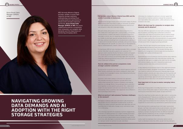 WD, formerly Western Digital, provides reliable, trusted, highcapacity storage solutions, underpinning everything from everyday business operations to advanced AI and data-intensive workloads. Grace Ensell, Sales Manager( EMEA) at WD, discusses collaborative partner ecosystems, how companies can navigate data demands and the importance of mentoring emerging talent.