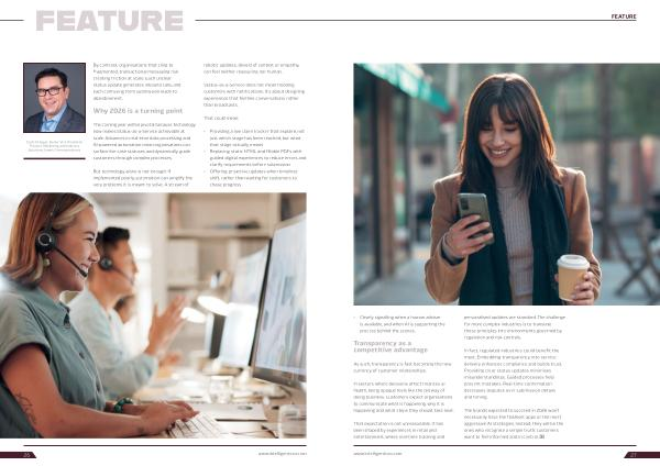The brands expected to succeed in 2026 won’ t necessarily have the flashiest apps or the most aggressive AI strategies. Instead, they will be the ones who recognise a simple truth: customers want to feel informed and in control. x www. intelligentcxo. com